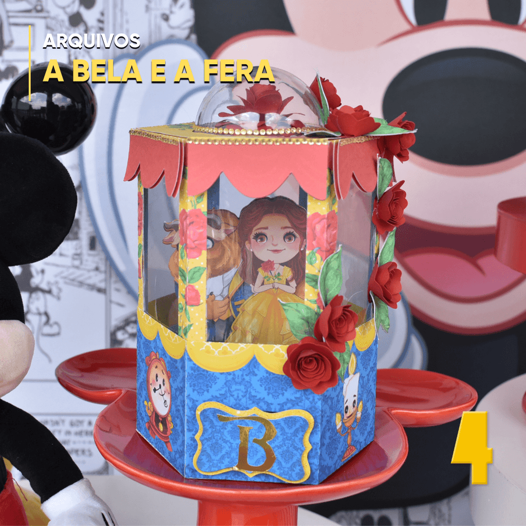 Entre no mundo mágico dos contos de fadas com a Caixa A Bela e a Fera, perfeita para festas temáticas, lembrancinhas encantadas, kits personalizados e papelaria criativa.