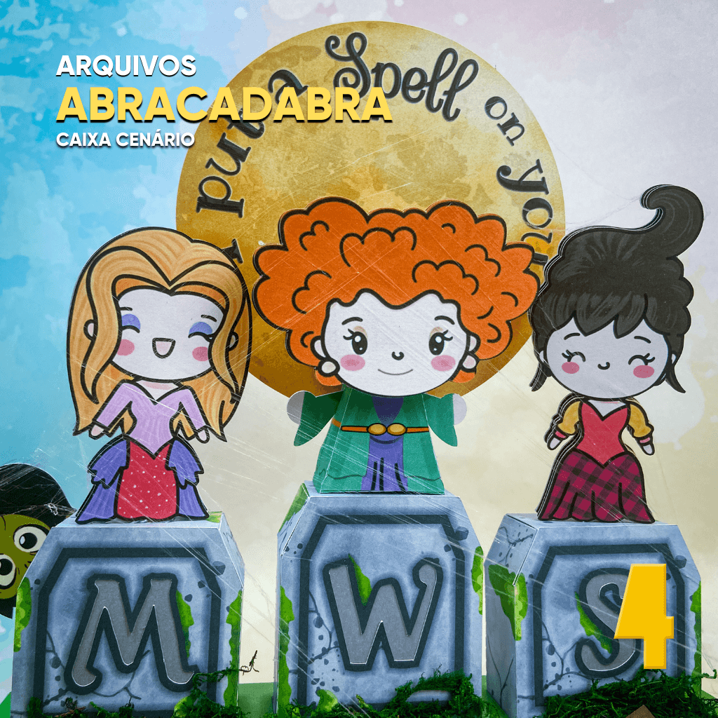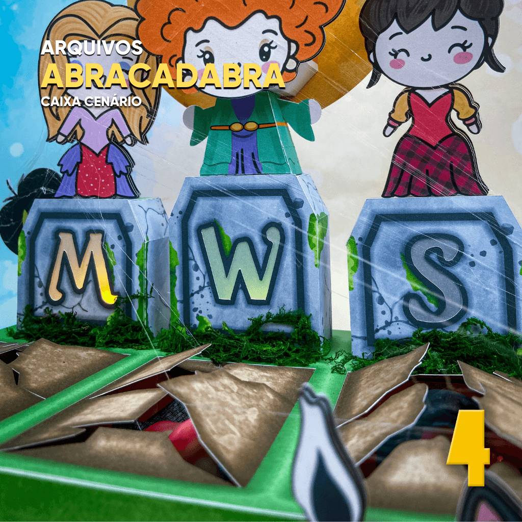 Inspirada no clássico filme Abracadabra (Hocus Pocus), essa caixa em formato de túmulo é perfeita para lembrancinhas temáticas, festas sombrias, papelaria personalizada e fãs das inesquecíveis irmãs Sanderson.