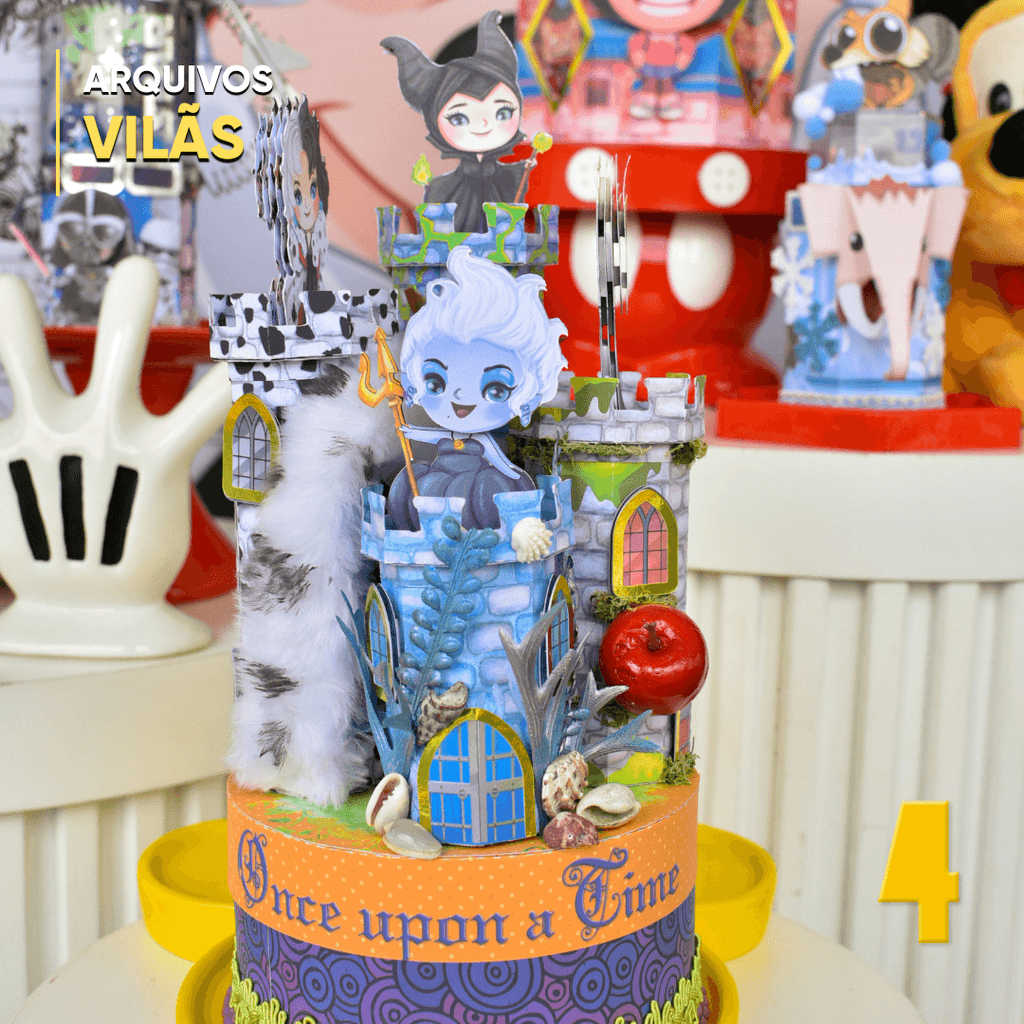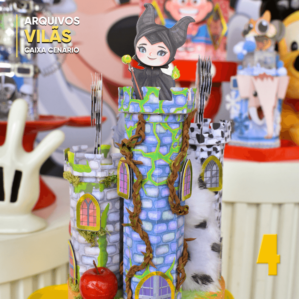 Perfeita para festas com temática sombria ou mágica, essa caixinha destaca personagens icônicos como Malévola, Cruella, Úrsula e Rainha Má. É ideal para lembrancinhas com personalidade, decoração imponente e projetos de papelaria para fãs que preferem o lado sombrio do conto de fadas.