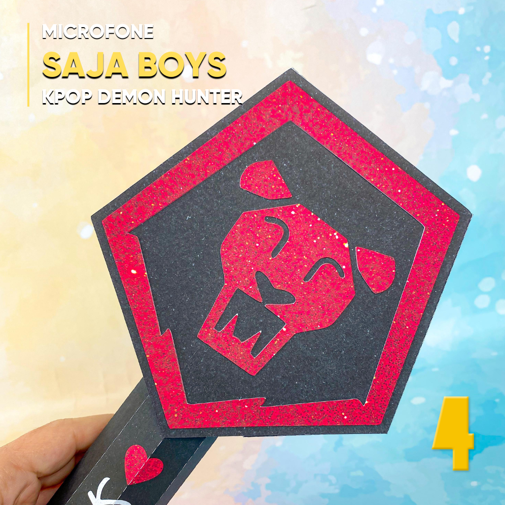 Com o design moderno e ousado do microfone Saja Boys, você pode criar lembrancinhas, scrapbooking ou presentes personalizados com a vibe energética dos Saja Boys!