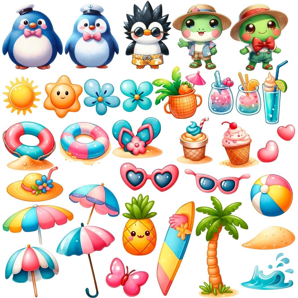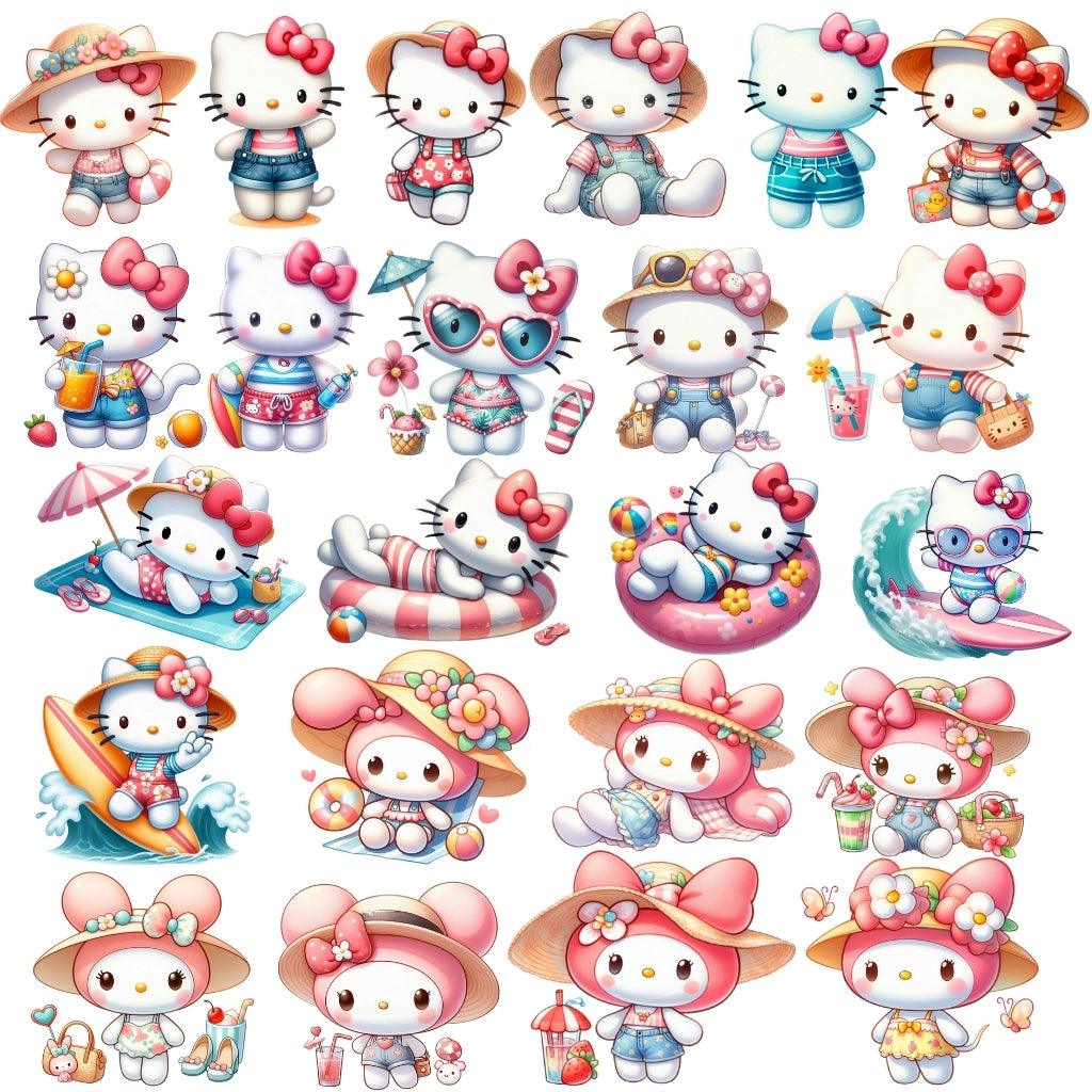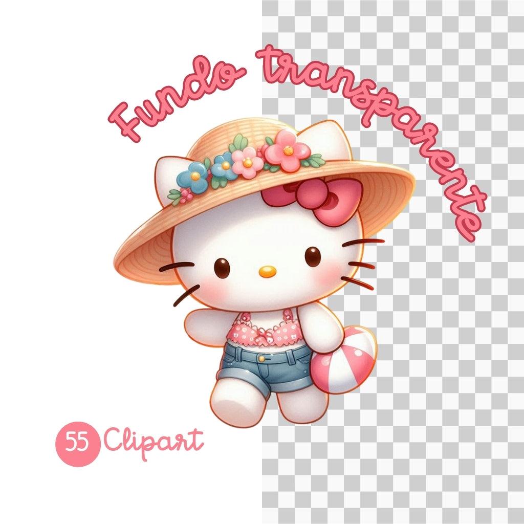 ✅ 55 Cliparts – Ilustrações fofas da Hello Kitty em clima de verão (PNG, fundo transparente)