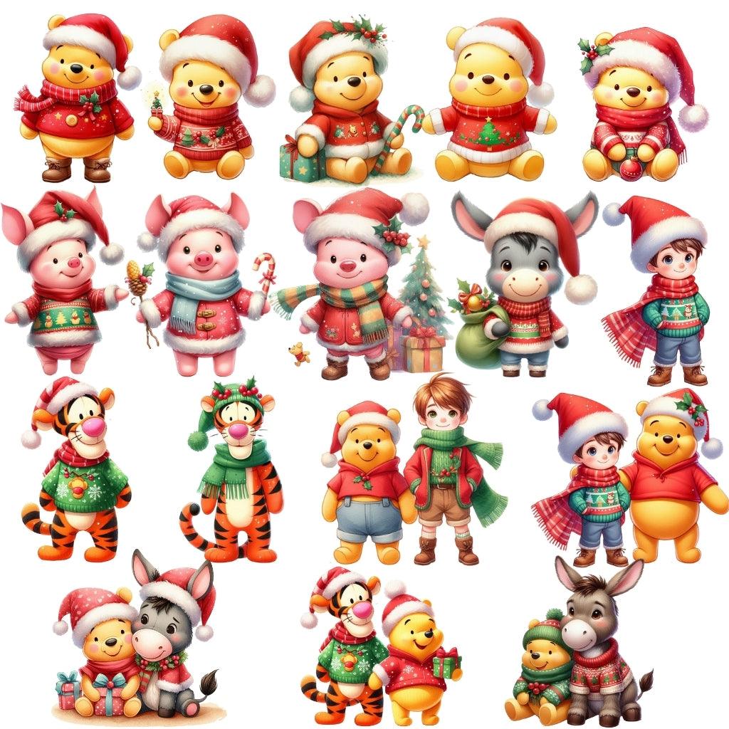 ✅ 17 Cliparts – Ilustrações do Ursinho Pooh, Tigrão, Leitão e elementos natalinos (PNG, fundo transparente)