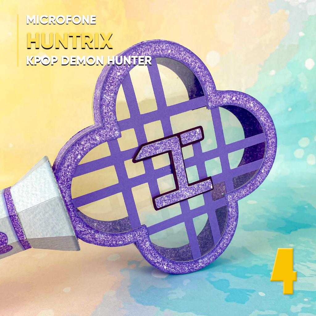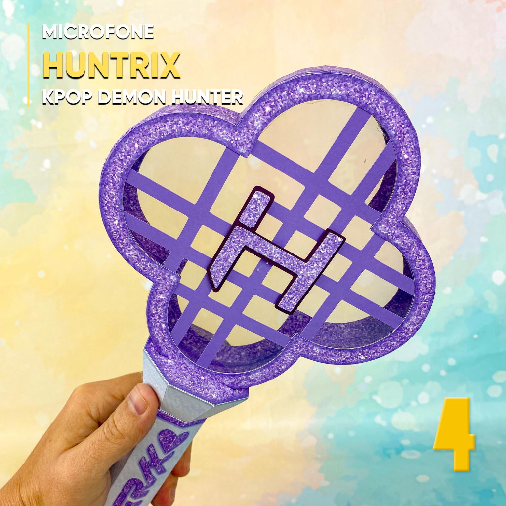 Ideal para festas temáticas de K-Pop, lembrancinhas personalizadas e decoração criativa, o Microfone Huntrix está disponível em .Studio, compatível com Silhouette Studio.