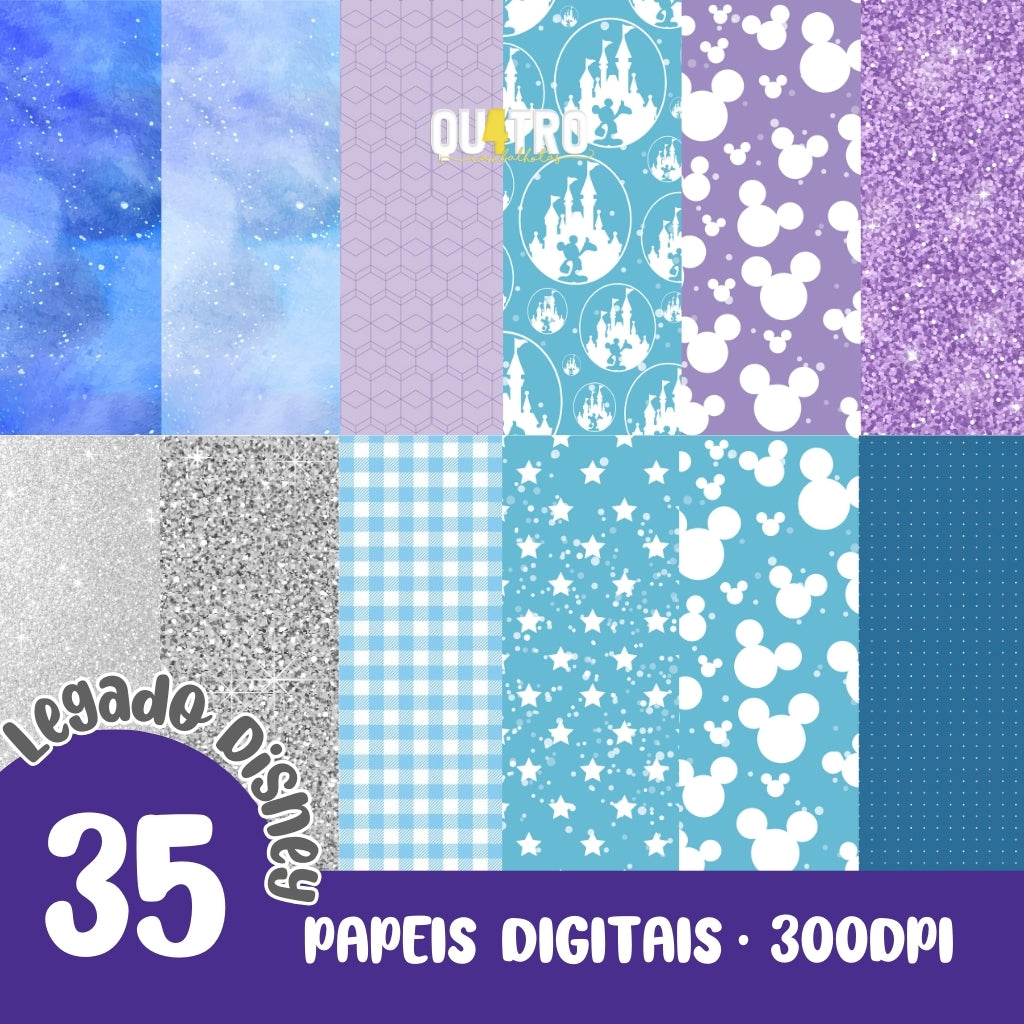 Dê um toque de magia aos seus projetos criativos com o Kit Digital Um Legado Disney, uma coleção encantadora com 35 papéis digitais exclusivos e 6 fontes temáticas, inspirados no universo clássico da Disney.