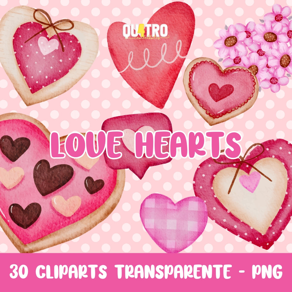 ¡Deja que el amor domine tus proyectos con el kit de cliparts digitales Love Hearts !