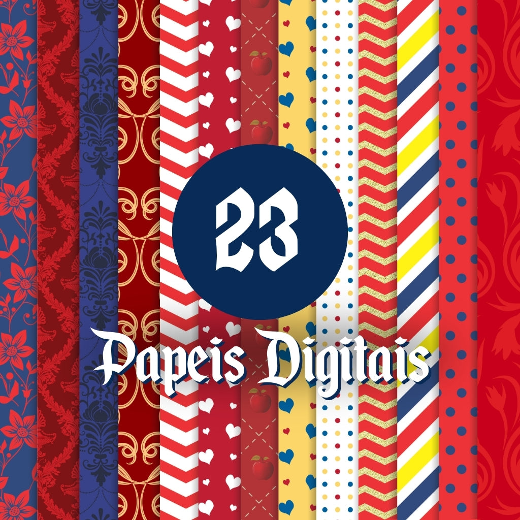 ✅ 23 Papeles Digitales con impresiones exclusivas inspiradas en Blancanieves (JPG, 300 DPI)