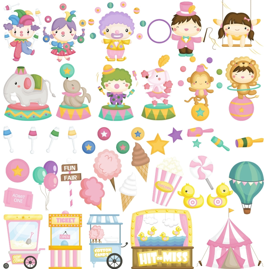 ¡El Kit Digital Circo Rosa trae toda la delicadeza y el encanto del circo en una paleta suave y femenina! 🎠💖 Con 33 cliparts exclusivos, 28 papeles digitales y 10 tipografías temáticas , este paquete es ideal para fiestas infantiles, scrapbooking, invitaciones, decoración, souvenirs y mucho más.