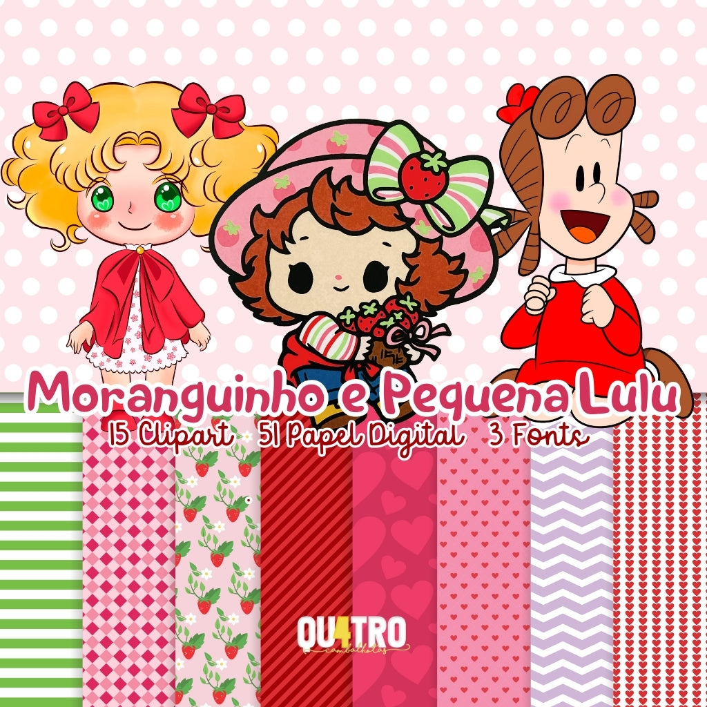 Kit Digital Frutillita y Lulú – Cliparts, Papeles Digitales y Fuentes