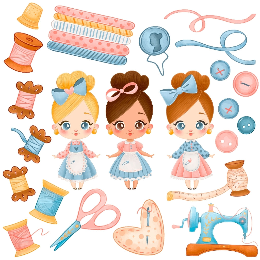 ✅ 43 Cliparts – Muñecas, ropa, accesorios y detalles encantadores (PNG, fondo transparente)