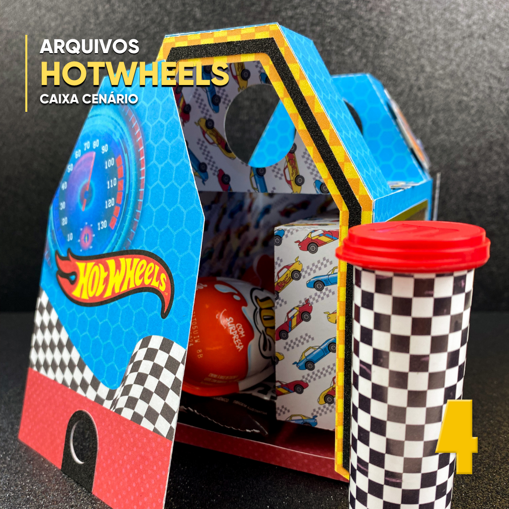 Este archivo digital exclusivo es ideal para guardar crayones, lápices, juguetes pequeños o regalos de fiesta creativos, y llevar la emoción del universo Hot Wheels a la decoración de tu fiesta.