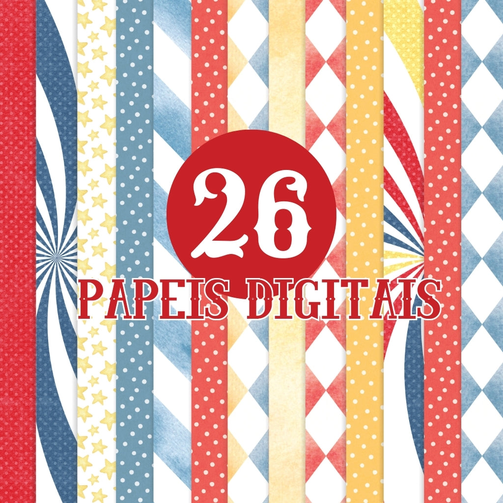 Kit Digital Circo Rojo – Cliparts, Papeles Digitales y Fuentes 🎪🔴